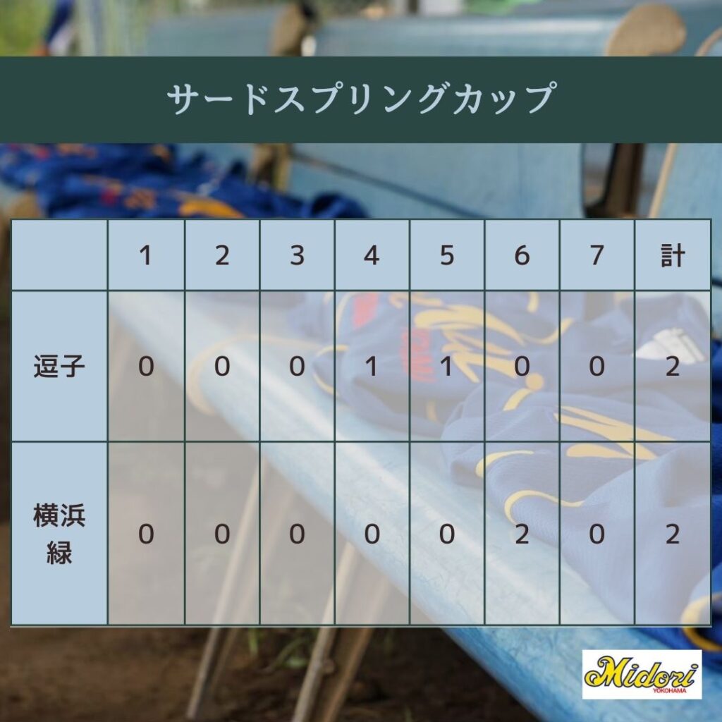 4月12日(土)サードスプリングカップ交流戦を逗子シニアさん並びに湘南平塚北シニアさんとおこない1分1敗でした。